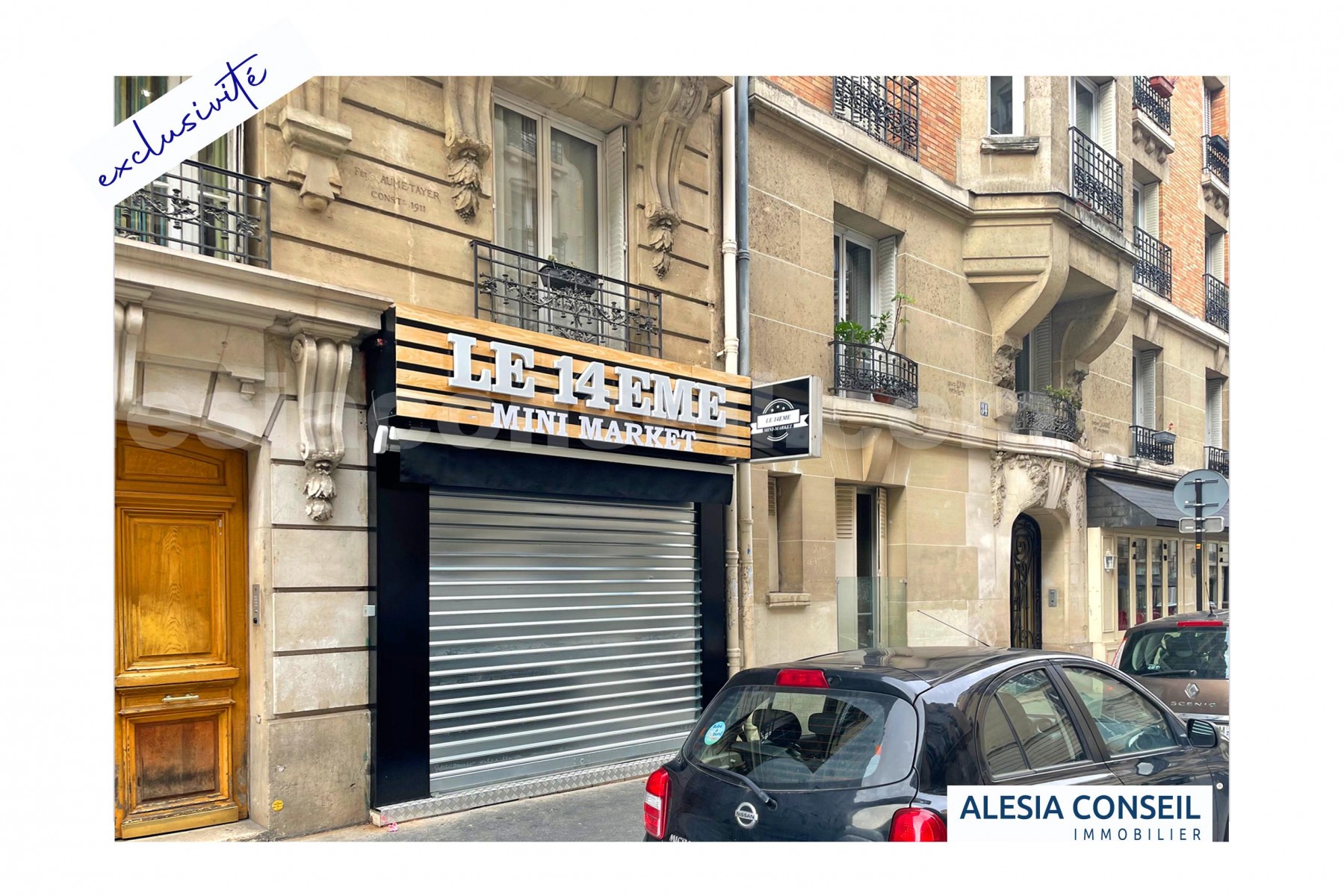 Entre ALESIA et MOUTON DUVERNET rue Bezout, fond de commerce en activité d'épicerie fine 42 m2 comprenant : Pièce 15 m2 avec baie vitrée sur rue, dégagement avec étagères, pièce 11 m2 et lieux de stockage. En EXCELLENT ÉTAT général, vendu avec meubles et étagères. Bail en cours jusqu'en juin 2028.